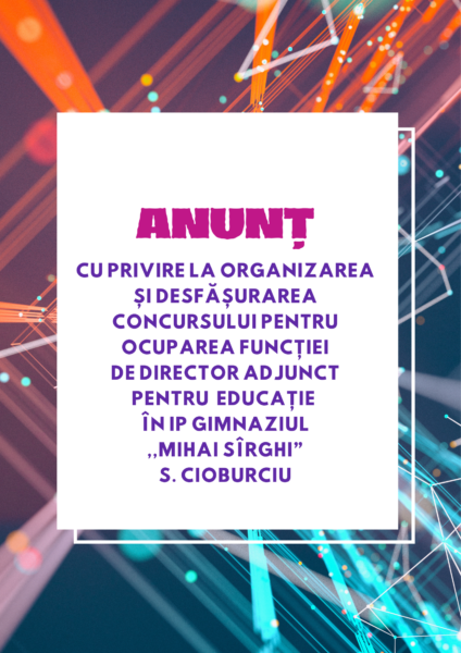Anunt cu privire la organizarea și desfășurarea concursului pentru ocuparea funcției de direc...
